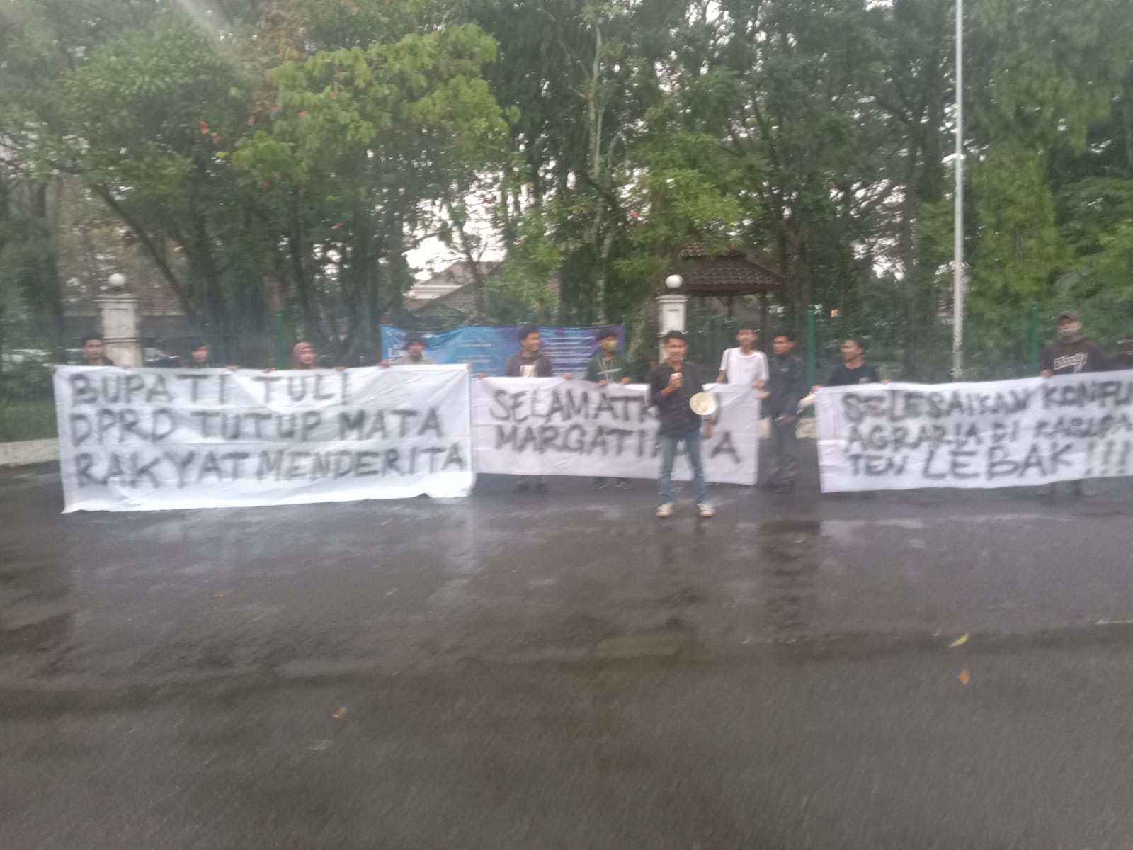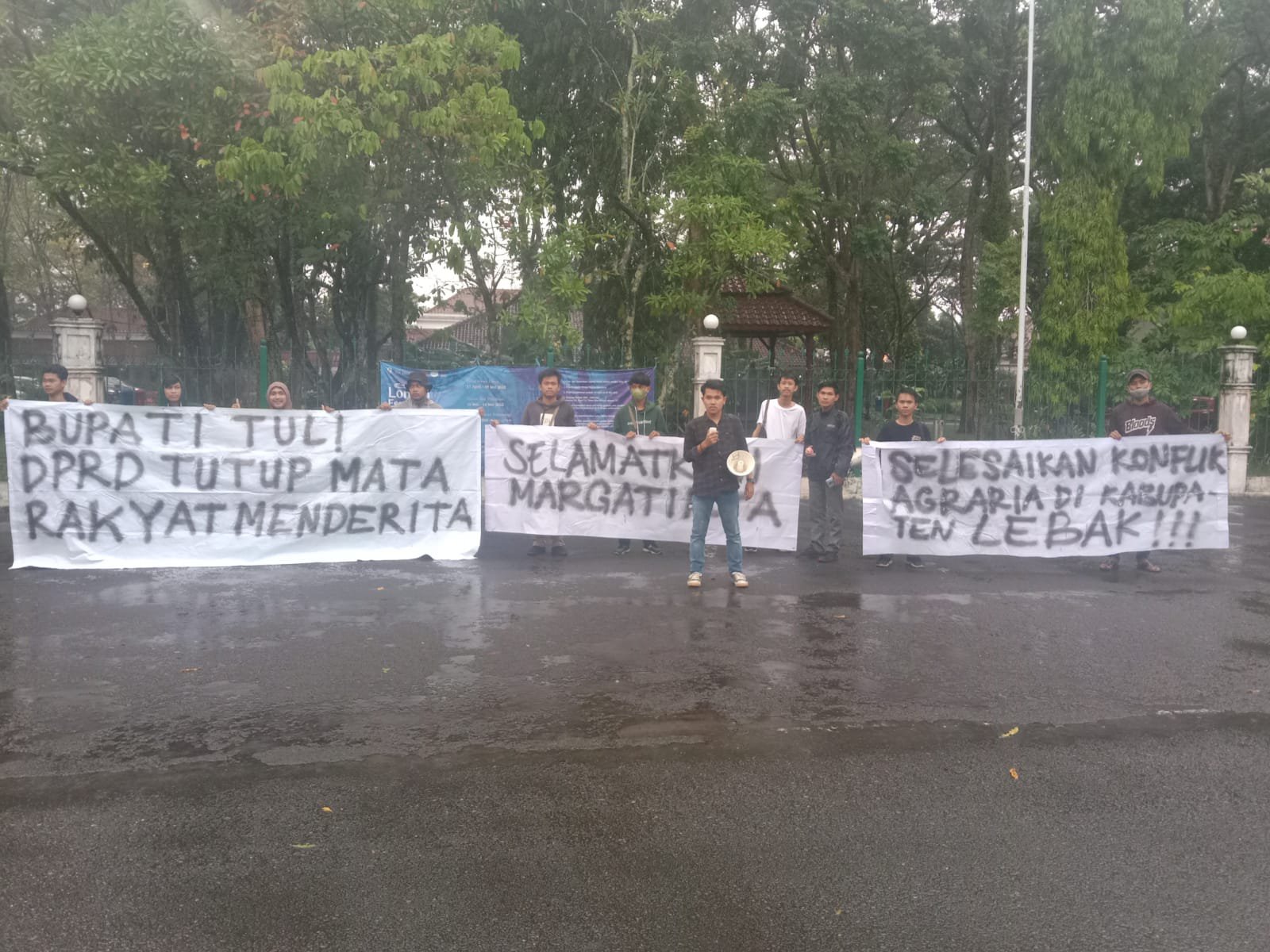 LEBAK BANTEN | Aliansi masyarakat margatirta melakukan aksi demonstrasi di kantor bupati Kabupaten Lebak. Rabu (18/5/2022).