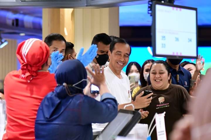 JAKARTA | Presiden Joko Widodo mengunjungi pusat perbelanjaan Grand Indonesia, Jakarta, pada Minggu malam, 15 Januari 2023. Kunjungan tersebut dilakukan untuk kembali mengecek aktivitas perekonomian usai pencabutan kebijakan pemberlakukan pembatasan kegiatan masyarakat (PPKM) di Indonesia dua minggu lalu.