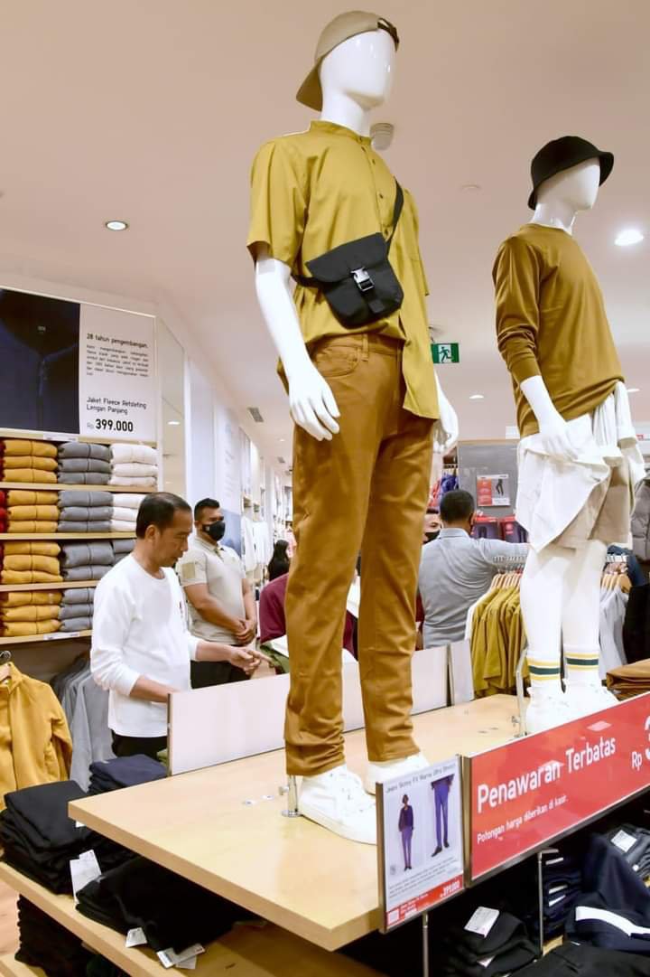 Ketika menghampiri salah satu toko pakaian jenama lokal, Executive, Presiden Jokowi tampak membeli sebuah topi berwarna hitam dan juga kemeja. Rani, staf Executive mengaku bangga toko jenama lokal tempatnya bekerja dihampiri oleh Presiden.