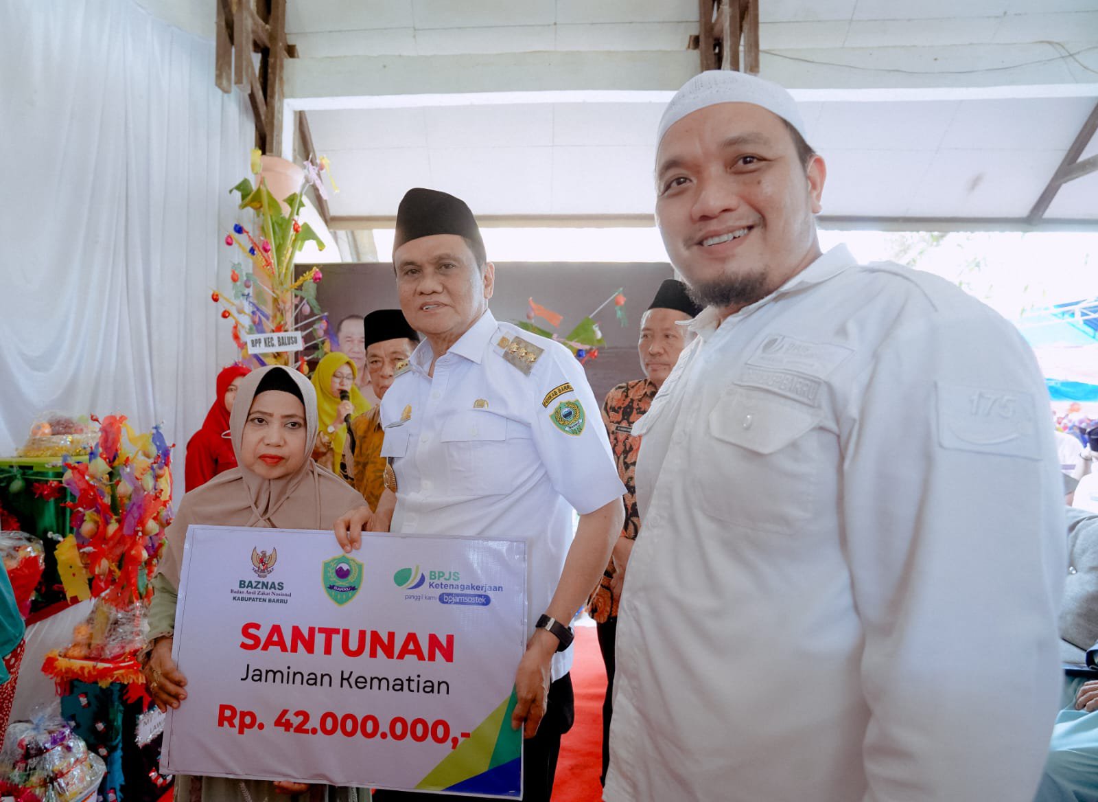 Dalam kegiatan Maulid ini juga dirangkaikan sosialisasi zakat,infaq dan sedekah dan diserahkan bantuan bagian mustahiq yang berasal dari Zakat, Infaq dan sadaqah masyarakat yang terkumpul melalui Baznas Barru.Selain itu juga diserahkan santunan BPJS kepada Imam Masjid Pude’e Almarhum Burhanuddin yang diserahkan langsung Bupati Barru yang didampingi Kepala BPJS Sahid Wahid dan Komisioner Baznas.