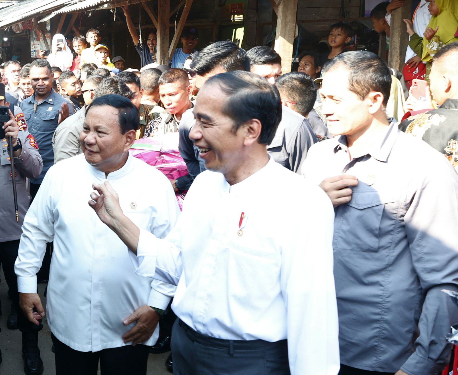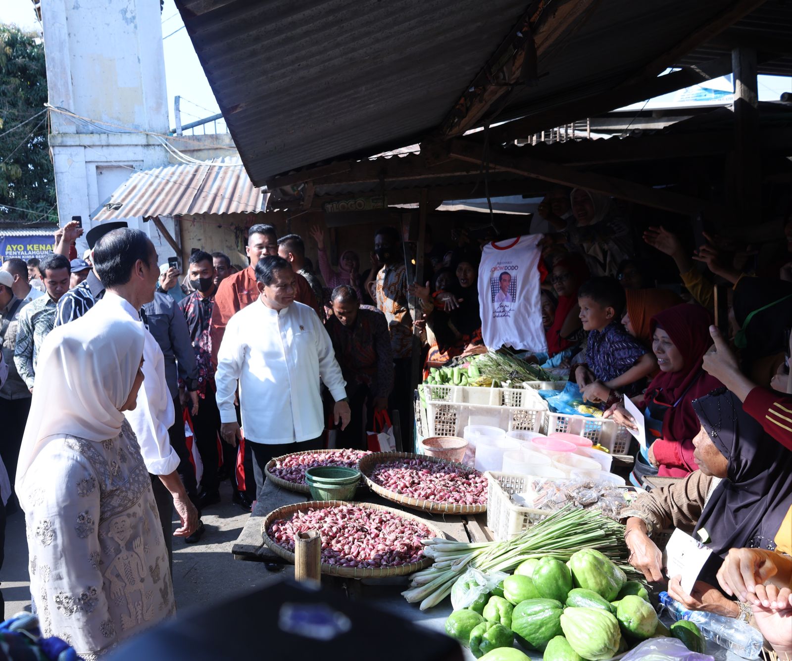 Setibanya sekitar pukul 14.58 WIB, para warga antusias menyambut kedatangan Presiden dan sempat menyapa warga. Sekitar 30 menit di Pasar Grogolan, Presiden yang didampingi Menhan Prabowo melakukan peninjauan sekaligus menyerahkan sejumlah bantuan sosial bagi para pedagang pasar dan pedagang kaki lima.