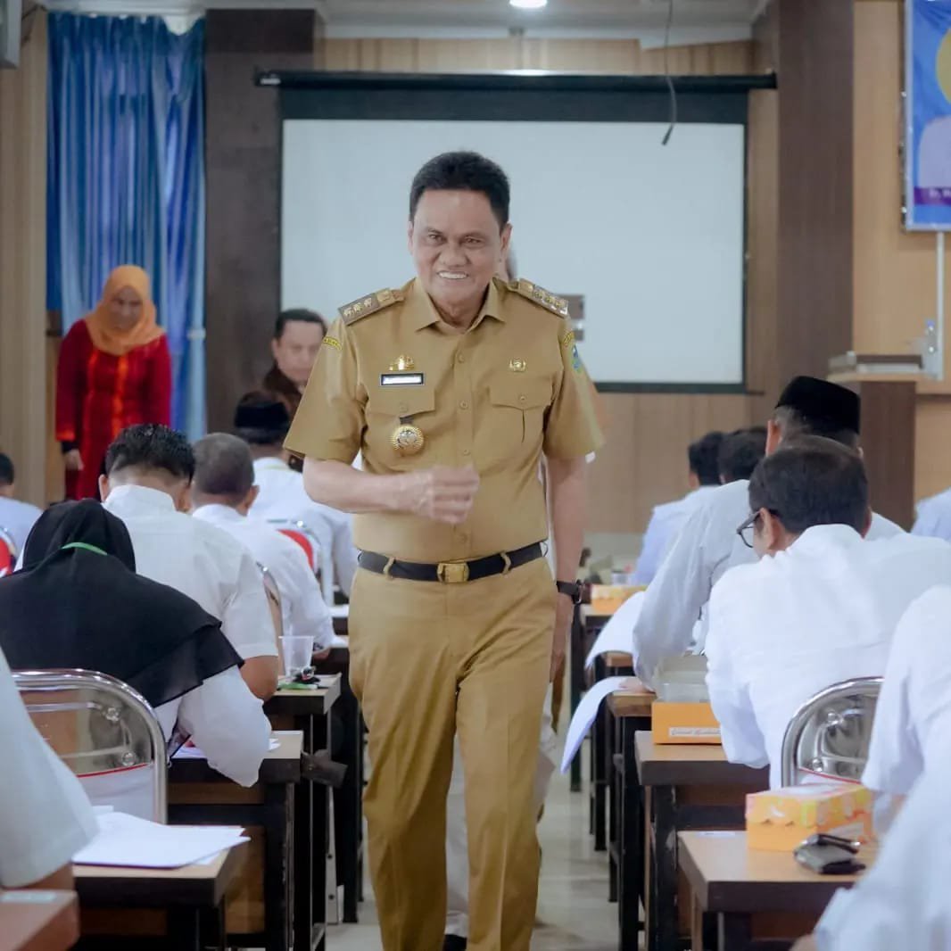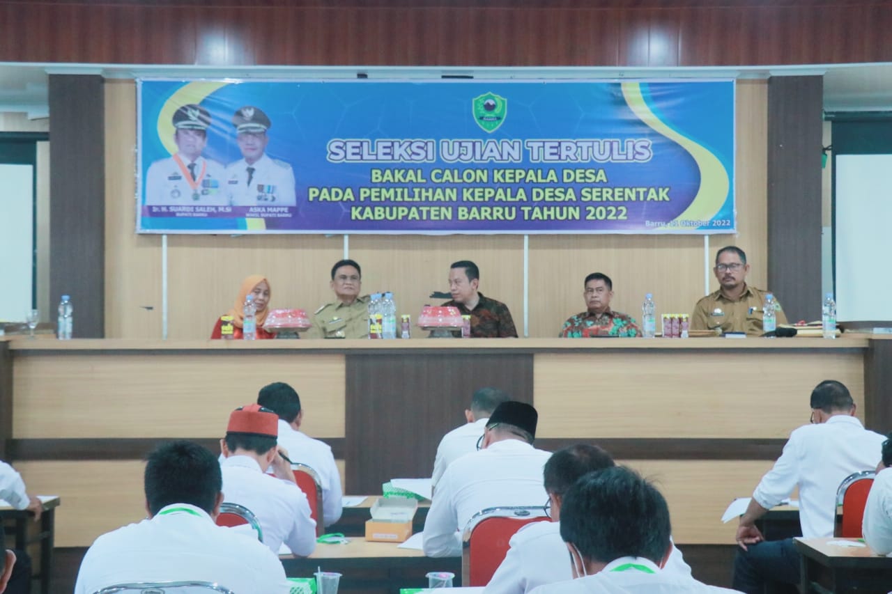BARRU | Bupati Barru Ir. H. Suardi Saleh, M.Si Meninjau Tes Tertulis Bakal Calon Kepala Desa Se-Kabupaten Barru di Aula Dinas Pendidikan dan Kebudayaan pada hari Selasa 11 Oktober 2022.