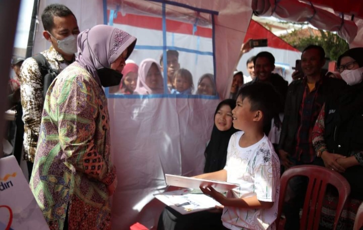 CIANJUR, JABAR | Untuk memastikan penanganan serta pemberdayaan bagi para penyintas gempa Cianjur, Mensos Risma kembali mengunjungi warga pengungsi gempa di Lapangan Jagaraksa, Warungkondang, Kabupaten Cianjur, Jawa Barat, Jumat (16/12).