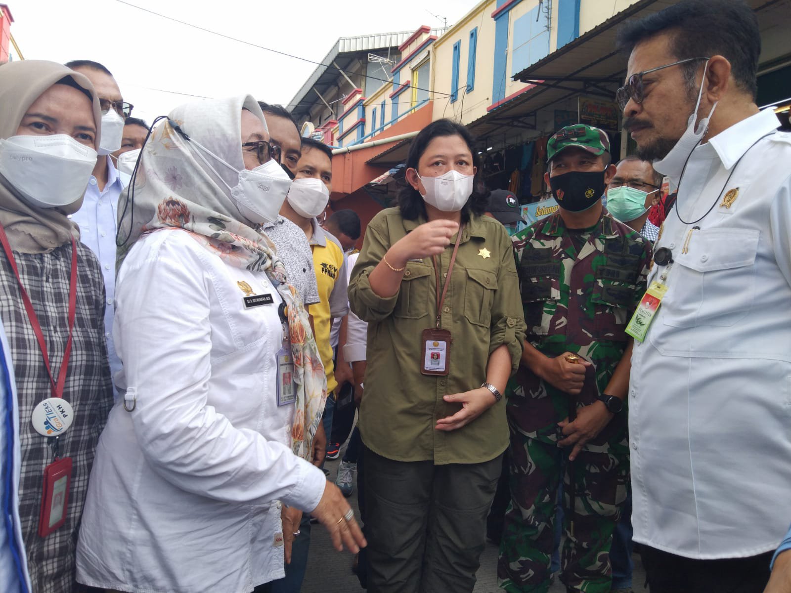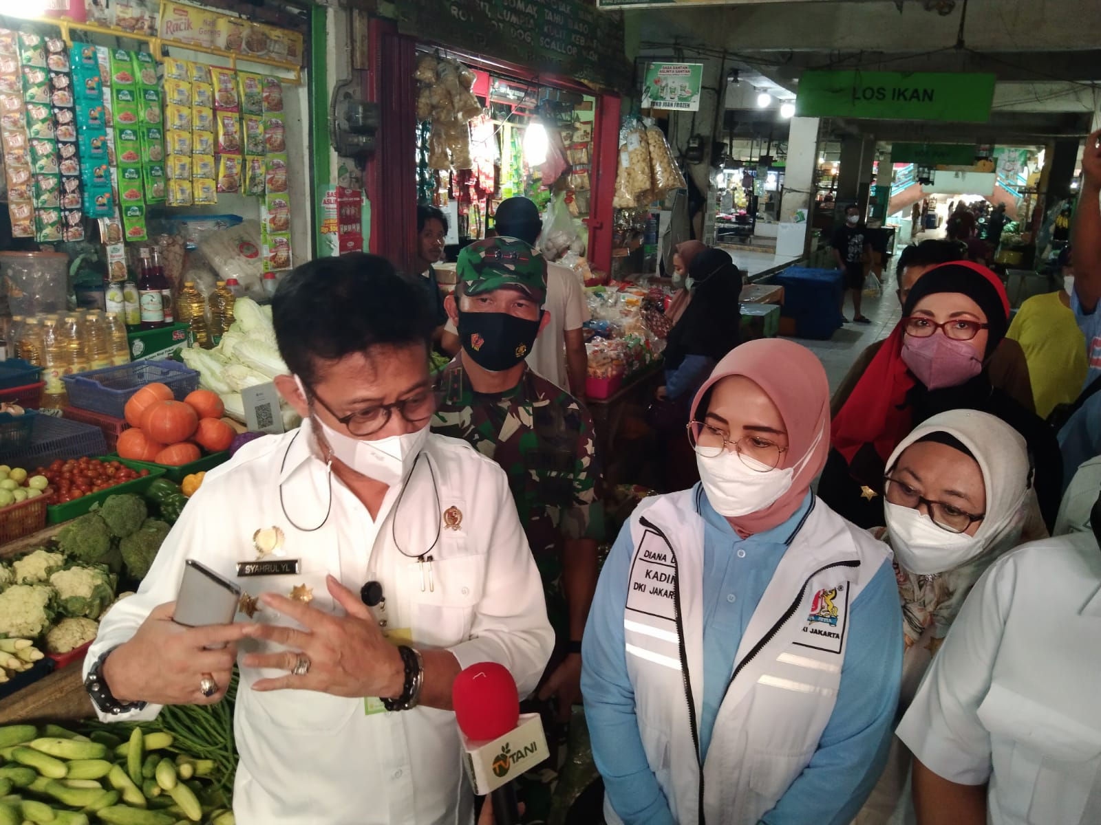 Kunker Menteri Pertanian RI Dr. H. Syahrul Yasin Limpo S.H.M.H di dampingi Dr. Ir Siti Munifah Pengawasan ketersedian pangan Provinsi Banten, Dirops Perumda Pasar Ashari, Camat Kelapa Dua Prima Saras Puspa, Danramil 02 Curug Kapten Arh Mulyono, Lurah Kelapa Dua Fahrurozi dan Babinsa Kelapa Dua Serda Risal.