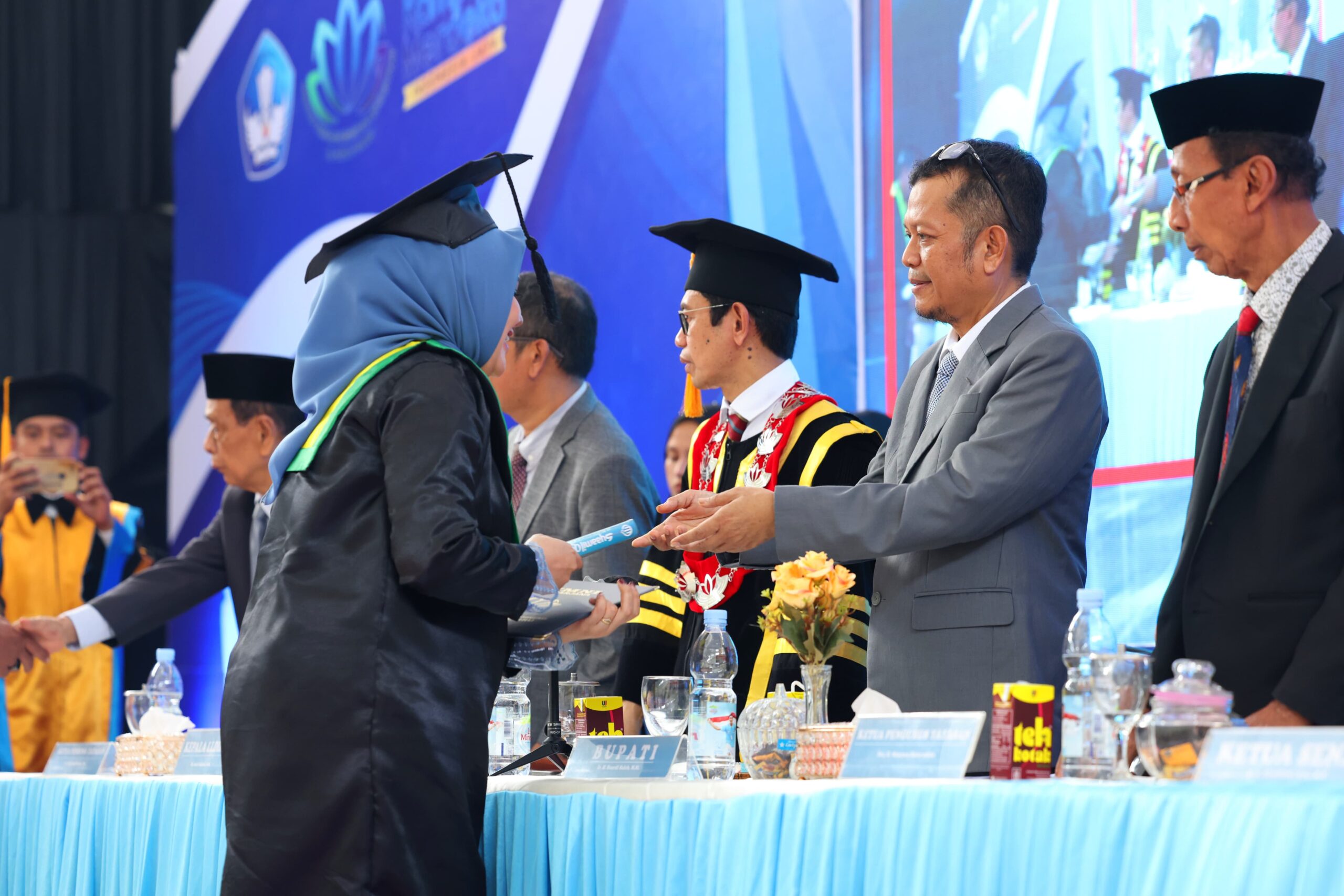 Selain itu, capaian ini juga dapat dilihat dengan banyaknya ASN, Polri, dan karyawan BUMN yang ikut diwisuda hari ini yang menunjukkan bahwa Institusi ini tidak hanya menyiapkan lulusan untuk dunia kerja, tetapi juga menjadi pendukung utama dalam membangun kapasitas dan kualitas Sumber Daya Manusia (SDM) Aparatur untuk Daerah kita.