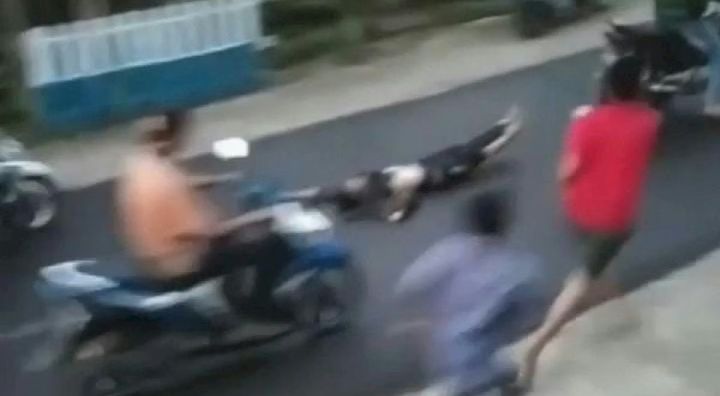 Dalam rekaman video yang beredar, terlihat pria dengan tangan dan kaki terikat diarak dan diseret menggunakan sepeda motor oleh sejumlah warga sambil diteriaki.