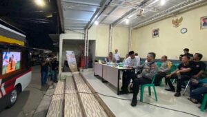 Kapolres menyapa sejumlah warga yang tengah menonton babak penyisihan antara Belanda versus Ekuador. Jum’at 25 November 2022 hingga menjelang tengah malam