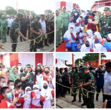 Dengan ramah dan senyuman, orang nomor satu di TNI Angkatan Darat tersebut mengajak anak-anak sekolah untuk bercengkrama yang disambut dengan antusias anak-anak.