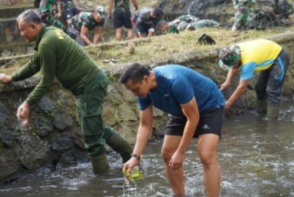 BANYUMAS | “Dimanapun tempatnya, kita bisa lakukan koordinasi guna menyamakan persepsi”, demikian penegasan Danrem 071/Wijayakusuma Kolonel Inf Yudha Airlangga, S.E., memimpin Rapat Koordinasi Staf saat dilaksanakannya Gropyok Pembersihan Kali Rompang, Rabu (3/8/2022) di Kali Rompang Komplek Makorem 071/Wijayakusuma, Sokaraja, Banyumas.