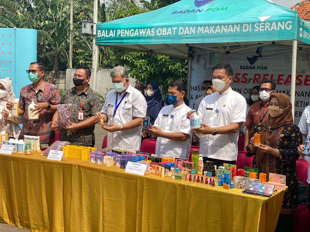 “Dari 55 sarana tersebut, diperoleh hasil 31 sarana Tidak Memenuhi Ketentuan (TMK) dengan temuan berupa kosmetik illegal dengan nilai keekonomian sekitar Rp. 59.406.000,00 atau Rp59,4 juta,” Terang Plt. Kepala BBPOM Serang, Faizal Mustofa Kamil saat Press Release pengukapan kasus di halaman kantornya, Kota Serang, pada Jumat, 29 Juli 2022.