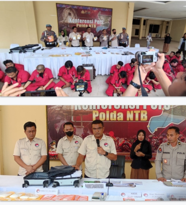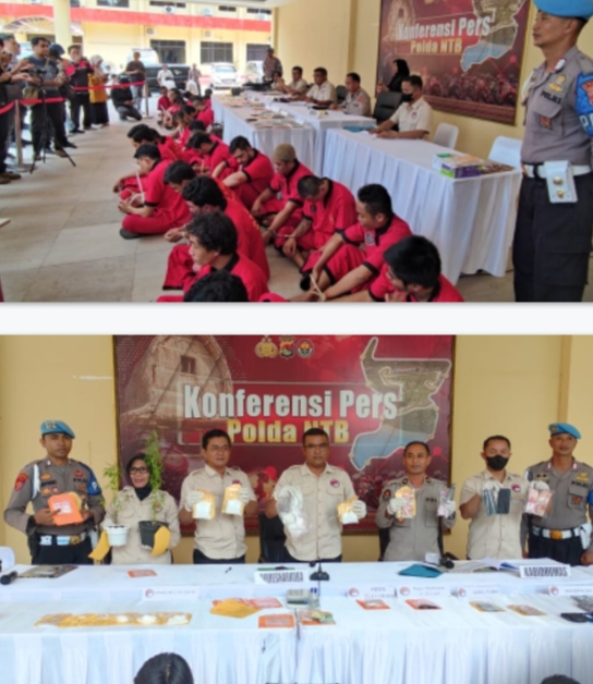 Dalam konferensi pers yang dihadiri oleh Direktur Resnarkoba Polda NTB, Kabid Humas Polda NTB serta Subdit Resnarkoba Polda NTB tersebut menghadirkan 35 tersangka yang berhasil diamankan, serta seluruh Barang Bukti (BB) tindak pidana yang dilakukan oleh para tersangka beserta seluruh awak media Hukrim Polda NTB
