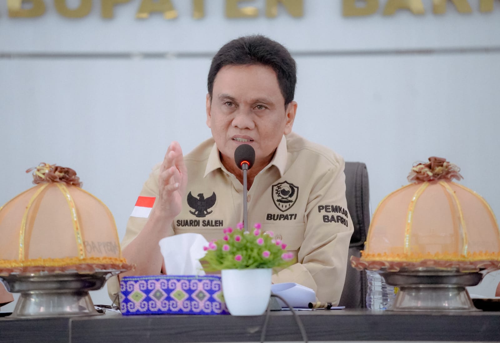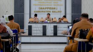 BARRU | Bupati Barru Ir.H.Suardi Saleh,M.Si memimpin rapat koordinasi, monitoring, evaluasi dan pelaporan pelaksana pembangunan daerah di aula Bappelitbangda Kabupaten Barru. senin 24 Oktober 2022.