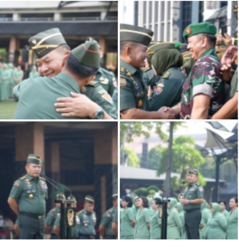 JAKARTA – Menjelang akhir masa jabatannya sebagai Kepala Staf Angkatan Darat (Kasad) Jenderal TNI Dr. Dudung Abdurachman memimpin apel bersama prajurit dan PNS di lingkungan Markas Besar Angkatan Darat (Mabesad), Kamis (26/10/2023). Momen tersebut dimanfaatkan Jenderal Dudung untuk berpamitan sekaligus menyampaikan ucapan terima kasih atas dukungan dan pelaksanaan tugas personel Mabesad selama dirinya menjabat sebagai Kasad.