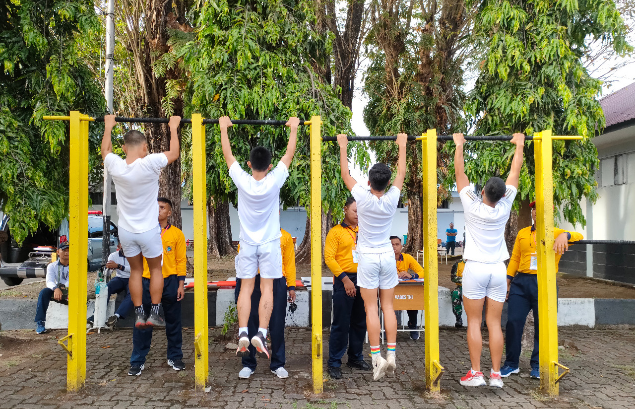 Para peserta tersebut melaksanakan tes kesamaptaan jasmani meliputi Baterai A yaitu lari selama 12 menit, kemudian Baterai B yang terdiri dari push up, sit up, pull up dan shuttle run dan dilanjutkan Baterai C yakni tes renang serta test postur.