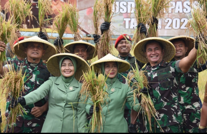 Panen raya padi dipimpin langsung oleh Danjen Kopassus Mayjen TNI Iwan Setiawan dan pejabat Kopassus lainnya.