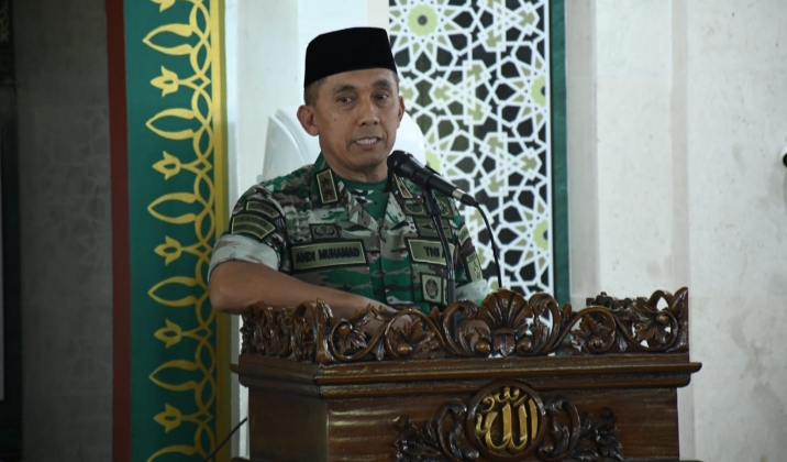 Setelah melaksanakan sholat Jumat berjamaah Pangdam berkesempatan memberikan Tausiyah kultum kepada para Jamaah Masjid Agung.