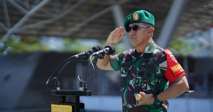 MAKASSAR| Pangdam XIV/Hasanuddin Mayjen TNI Andi Muhammad Bau Sawa Mappanyukki, S.H., M.H., memimpin apel gelar pasukan dalam rangka menyambut kedatangan tamu negara Perdana Menteri Australia HE YM Anthony Albanese, bertempat di lapangan Karebosi Jl. Jenderal Sudirman Makassar, Senin (6/06/2022).