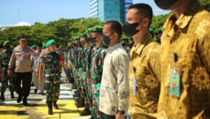 Sebelum upacara gelar pasukan Pangdam mengecek kesiapan personel TNI Polri dan gabungan Satpol PP, Damkar, Dinas Perhubungan dan unsur terkait lainnya.