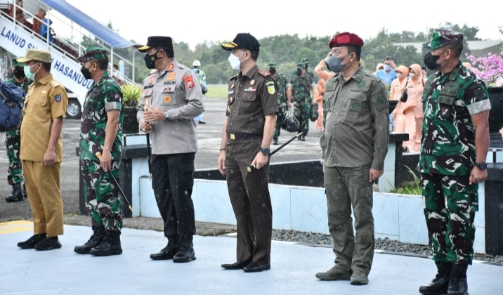 Turut hadir Gubernur Sulsel Andi Sulaiman Sudirman, S.T., Kapolda Sulsel Irjen Pol Drs. Nana Sujana, A.S., M.M., Dankosek II Koopsud II Marsma TNI Irwan Pramuda, Danlantamal VI Laksma TNI Dr. Benny Sulandari, S.E., M.M., Danlanud Hasanuddin Marsma TNI David Tamboto, Irkoopsud II Marsma TNI Sri Waluyo, Kasdiv 3 / Kostrad Brigjen TNI Susilo, Kabinda Sulsel Brigjen TNI Dwi Suratmodjo, Kajati Sulsel Raden Febrytriyanto, S.H., M.H., Walikota Makassar Ir. H. Muhammad Ramdhan Pomanto dan para unsur pejabat TNI Polri Wilayah Makassar.