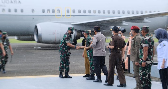 MAROS | Pangdam XIV/Hasanuddin Mayjen TNI Andi Muhammad, S.H.,M.H., menyambut kedatangan Kepala Staf Angkatan Udara (Kasau) Marsekal TNI Fadjar Prasetyo, S.E., M.PP., CSFA., berserta rombongan di Apron Galaktika Lanud Sultan Hasanuddin Kabupaten Maros, Sulawesi Selatan, Selasa (10/05/2022).