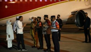 KENDARI |Pangdam XIV/Hasanuddin Mayjen TNI Andi Muhammad Bau Sawa Mappanyukki, S.H., M.H., menyambut kedatangan Presiden RI Ir. Joko Widodo beserta rombongan di Kota Kendari yang dijuluki Kota Lulo. Penyambutan berlangsung di Bandara Udara Haluoleo Kabupaten Konawe Selatan Provinsi Sulawesi Tenggara, Rabu (8/06/2022).