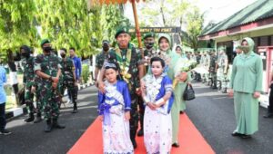 WAJO | Menginjak hari ke dua rangkaian kunjungan kerja (kunker) di wilayah Korem 141/TP, Pangdam XIV/Hasanuddin Mayjen TNI Andi Muhammad Bau Sawa Mappanyukki, S.H., M.H., didampingi Ketua Persit Kartika Chandra Kirana PD XIV Hasanuddin berkunjung ke Kodim 1406/Wajo Kabupaten Wajo, Sabtu (4/06/2022).