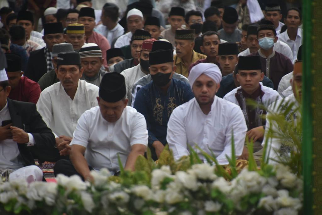Usai sholat idul adha berjamaah langsung Tausiah dilanjutkan dengan penyerahan hewan kurban secara simbolis oleh Pangdam I/BB kepada Panitia Qurban Kodam I/BB, Kabintaljarah Kodam I/BB Kolonel Arh Toto Raharjo.