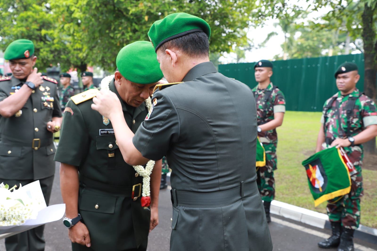 MEDAN | Pangdam I/BB, Mayjen TNI Achmad Daniel Chardin SE MSi memimpin langsung acara serah terima jabatan Kepala Staf Komando Daerah Militer I Bukit Barisan dari Brigjen TNI Purwito Hadi Wardhono SE MHum kepada Brigjen TNI Rifky Nawawi SE, SIP, di Aula AH. Nasution, Markas Kodam I/BB, Jum’at (22/07/2022).
