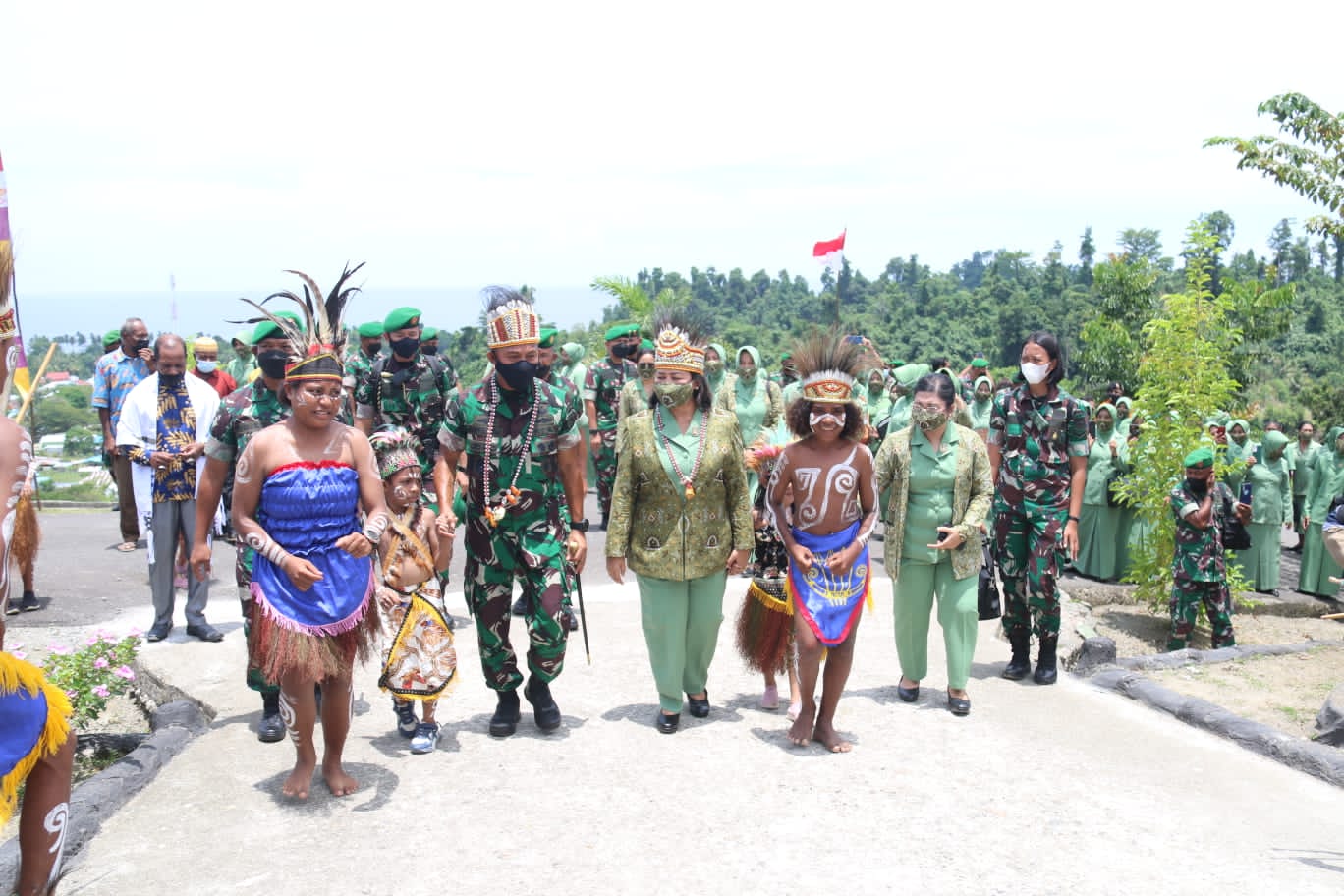 Masih ditempat yang sama, Pangdam didampingi Ketua Persit KCK Daerah XVIII/Kasuari Ny. Salin Gabriel Lema beserta rombongan menyempatkan diri untuk melihat pertunjukan seni dan bernyanyi bersama dengan sanggar seni tari Mankobon Binaan Kodim 1805/Raja Ampat.