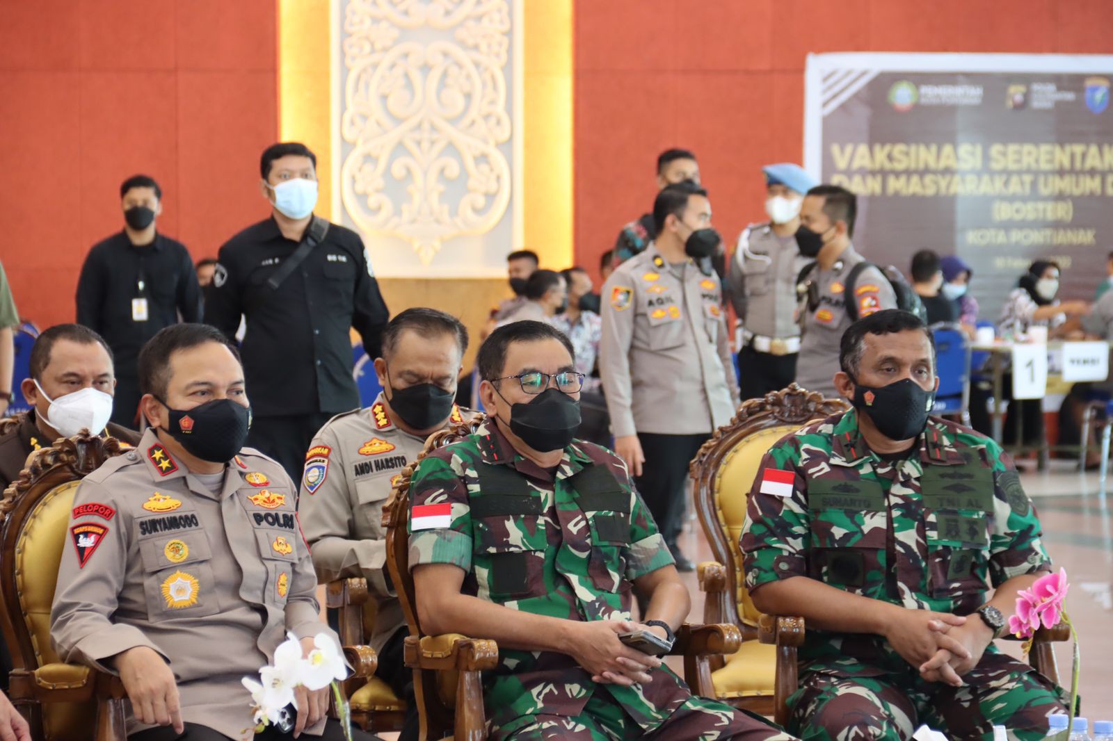 PONTIANAK | Pangdam XII/Tanjungpura, Mayjen TNI Sulaiman Agusto, S.I.P., M.M., bersama Forkopimda Provinsi Kalimantan Barat menghadiri vaksinasi serentak yang dilaksanakan di Pontianak Convention Center, Jalan Sultan Syarif, Kota Pontianak.