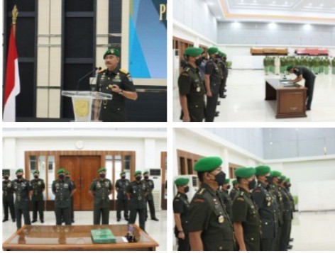 KUBU RAYA | Panglima Kodam XII/Tanjungpura Mayjen TNI Sulaiman Agusto, S.I.P., M.M., memimpin serah terima jabatan (Sertijab) Perwira Menengah (Pamen) Golongan IV di lingkungan Kodam XII/Tpr. Acara berlangsung di Aula Sudirman Makodam XII/Tpr.