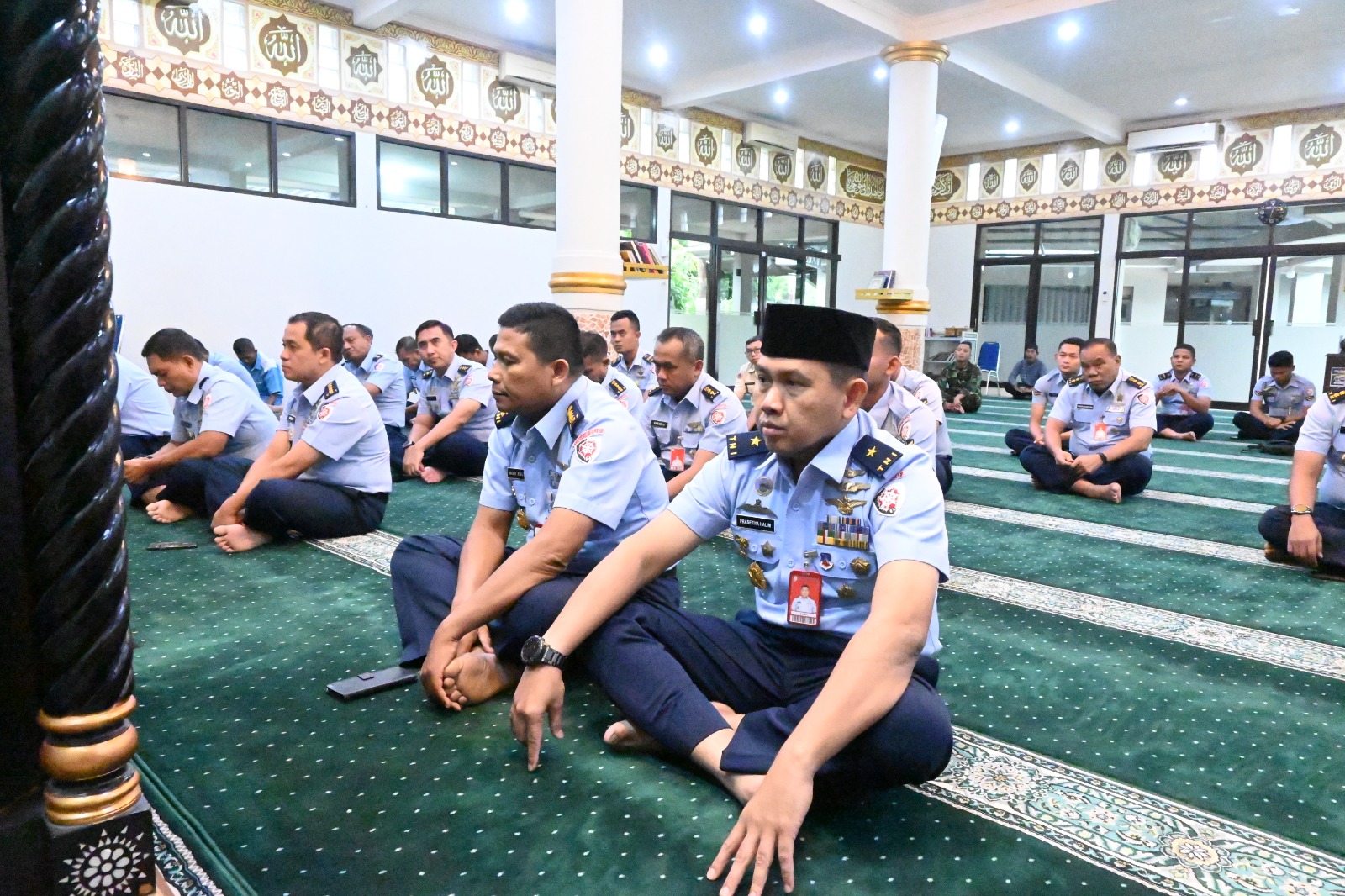 JAKARTA – Panglima Komando Operasi Udara I Marsda TNI Mohammad Nurdin memberikan kultum setelah solat zuhur berjamaah, bertempat di Mesjid Darussalam Makoops Udara I. (Senin, 10-3-2025).