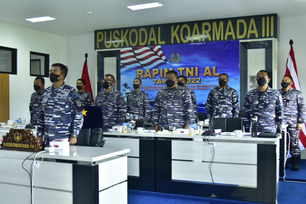 JAKARTA | Panglima Koarmada III Laksamana Muda TNI Irvansyah,S.H.,CHMRP.,M.TR.(Opsla) mengikuti Rapat Pimpinan (Rapim) TNI-Angkatan Laut tahun 2022 yang dilaksanakan di Auditorium Denma Markas Besar TNI Angkatan Laut di Cilangkap, Jakarta Timur. Rabu (02/03/22).