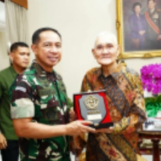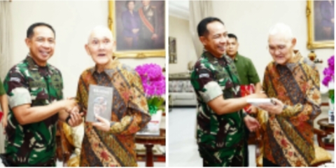 Mengakhiri silaturahmi, Panglima TNI memberikan cinderamata dan sebuah buku kepada Pak Try Sutrisno sebagai kenang-kenangan.