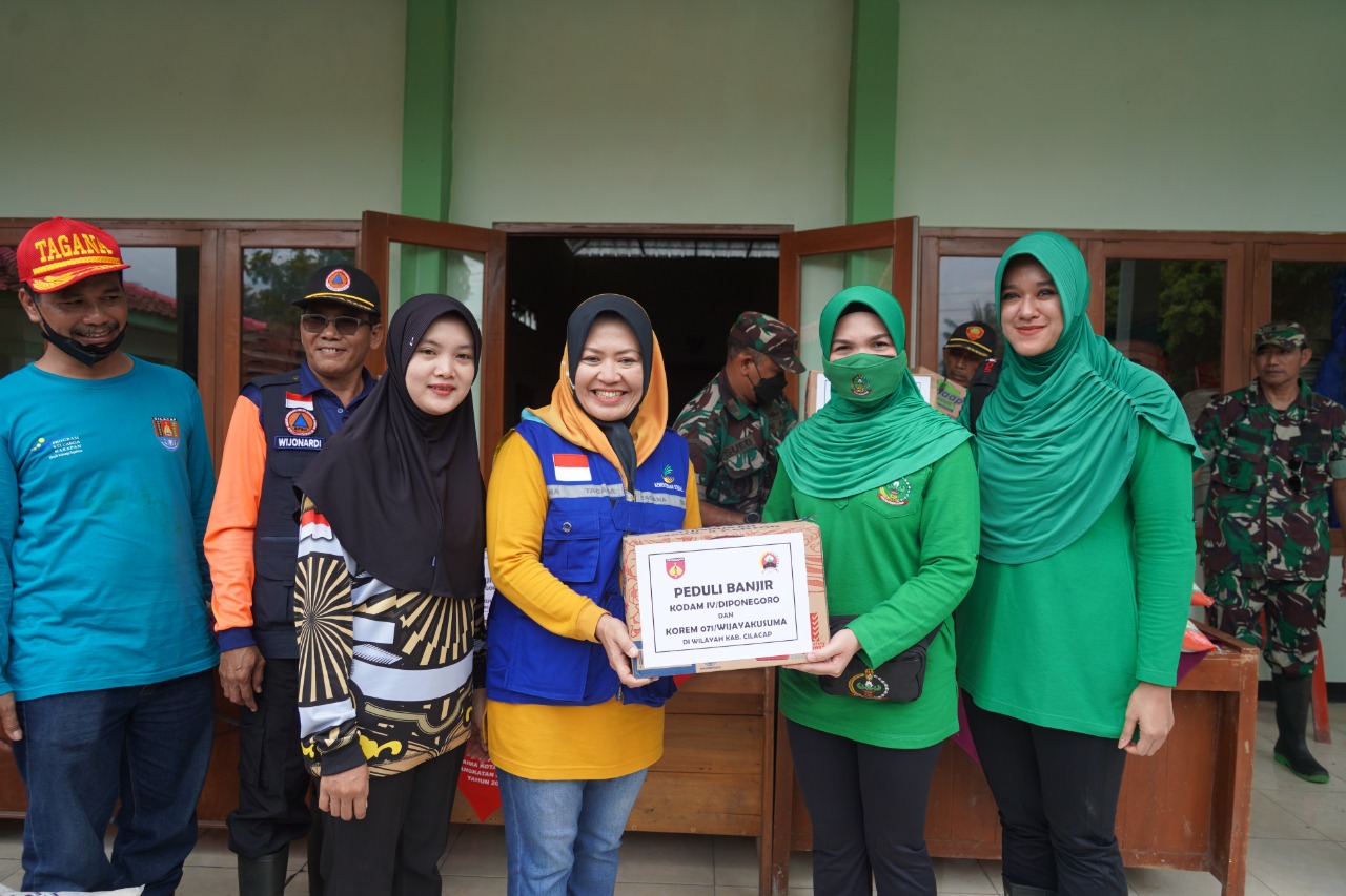 Kepedulian Persit Koorcab Rem 071 tersebut, saat Ny. Natania Yudha Airlangga mendampingi Danrem 071/Wijayakusuma Kolonel Inf Yudha Airlangga, S.E , meninjau situasi dan kondisi terkini banjir di Desa Bojong dan Desa Jalijeruk Kecamatan Kawunganten Kabupaten Cilacap, Sabtu (8/10/2022).