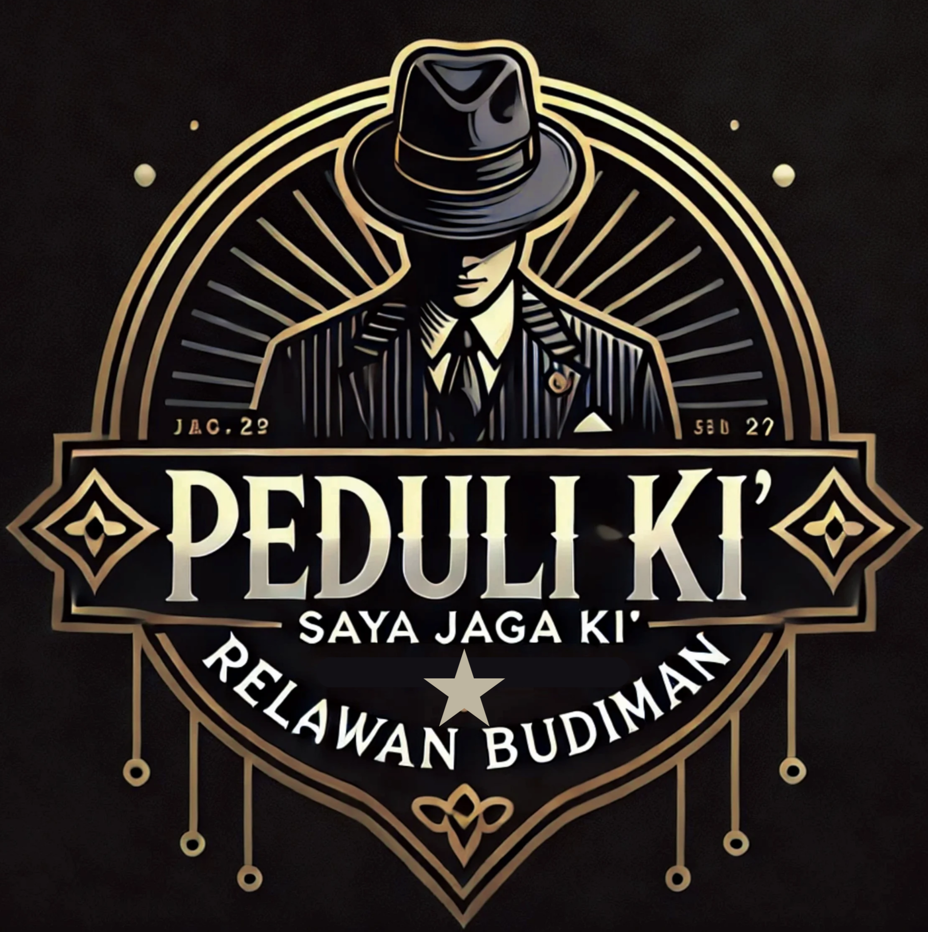 Logo kampanye yang khas, menampilkan sosok pria elegan berjas dan topi dengan sentuhan warna hitam dan emas, memperlihatkan kekuatan dan dedikasi relawan dalam memperjuangkan visi Budiman-Akbar. Desain ini juga mencerminkan tekad untuk membawa perubahan nyata yang berlandaskan kepedulian dan kerja sama.
