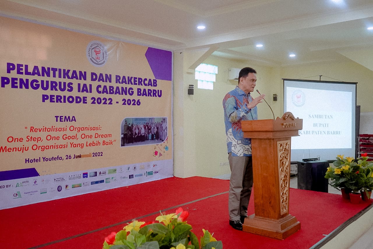 Pada kesempatan sama, Ketua IAI Cabang Barru, H.Taswi S.Farm menyampaikan terima kasih kepada Bapak Bupati atas kehadirannya pada pelantikan IAI Cabang Barru.