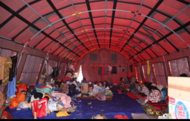 “Di sini selain ada tenda pengungsi, kami juga dibantu ada tempat ibadah darurat dan dapur umum,” ujarnya.