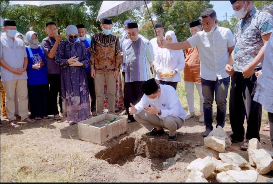 “Saya atas nama pemerintah dan peribadi mengapresiasi pembangunan Mushallah ini”,sebut Suardi Saleh usai peletakan batu pertama.