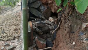 Lebih jauh Juhadi mengatakan, galian pondasi TPT itupun harus dipertanyakan kedalaman serta motifnya, selain itu, kemiringan pasangan batu sebelah dalam juga diragukan tidak mencapai ketebalan yang seharusnya, termasuk rongga dinding atara pasangan dengan tanah aslinya.