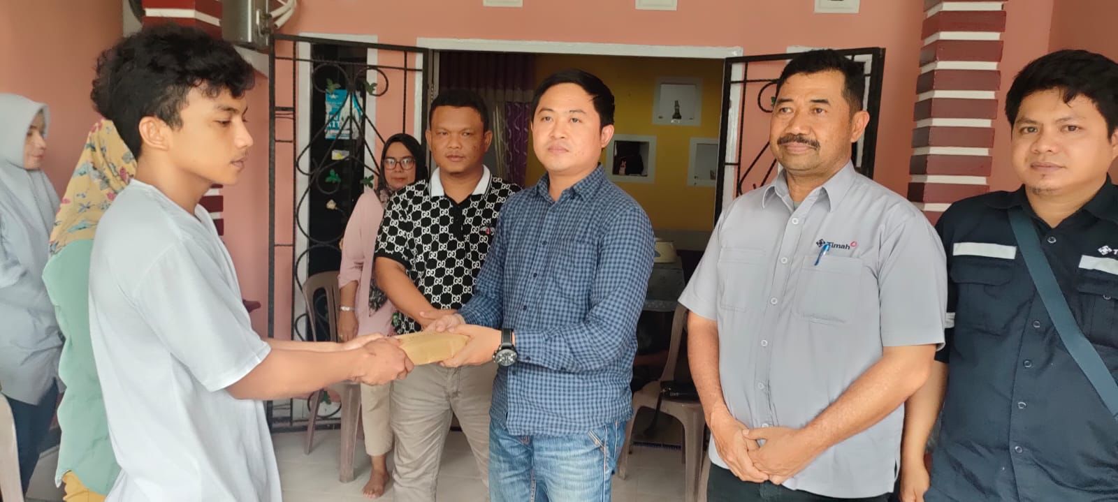Didampingi Kabid Divisi Pengamanan serta Kabag Pengawas KIP PT Timah Tbk, Budi pun menyerahkan secara langsung santunan uang duka tersebut kepada isteri korban.