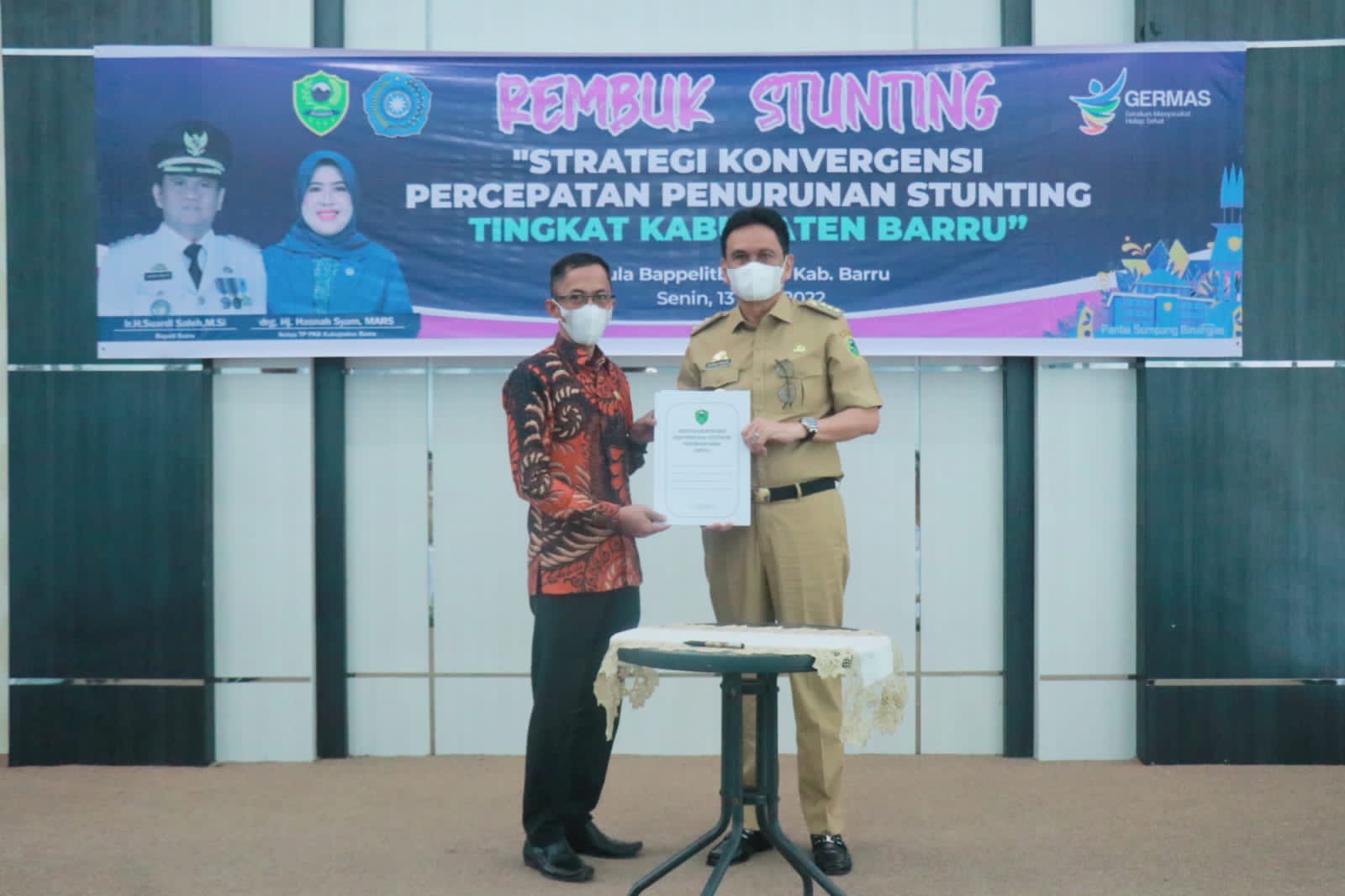 BARRU | Penanganan Stunting di Barru mendapatkan Legitimasi Sempurna dari Pemerintahan Daerah yang ditandatangani oleh Bupati Barru, Ir. H. Suardi Saleh M.Si dan Ketua DPRD Barru Lukman T serta mengambil Tandatangan Komitmen semua Stakeholder untuk bersama percepatan Penanganan Penurunan Stunting di Kabupaten Barru.