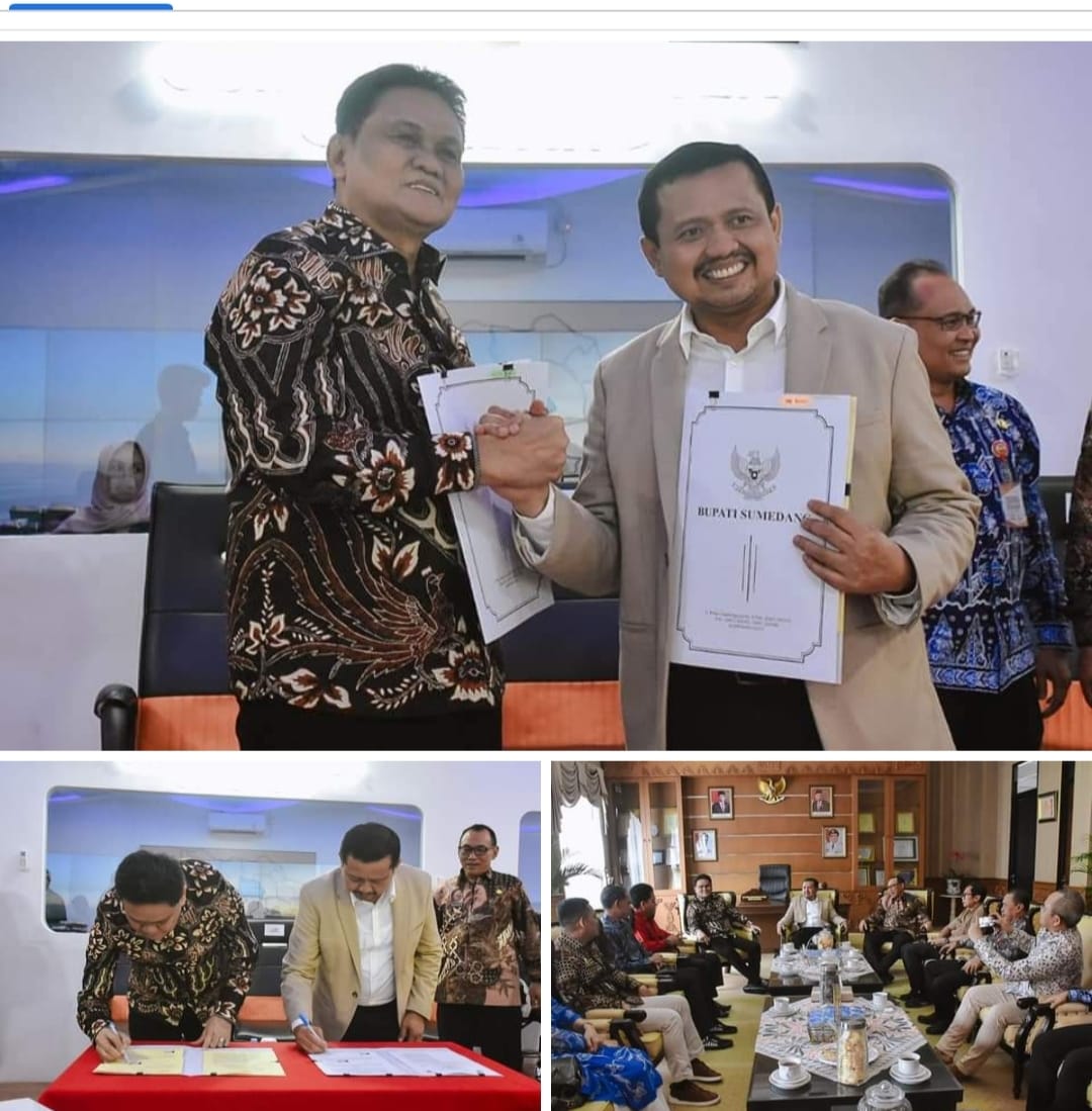 Penandatanganan MoU antara Bupati Barru Ir. H. Suardi Saleh M. Si dan Bupati Sumedang Dr. H. Dony Ahmad Munir, ST. MM tentang Kerjasama Penyelenggaraan Pemerintahan, Pembangunan dan Pengembangan Potensi Daerah berlangsung di Kantor Bupati Sumedang, Regol Wetan Sumedang, Kamis 7/9/2023.