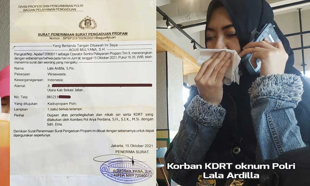 JAKARTA | Sebagaimana ramai diberitakan beberapa waktu lalu tentang adanya dugaan perilaku bobrok oknum anggota Polri berinisial Kombespol AP yang telah dilaporkan ke Polres Tangerang Selatan oleh istrinya, Lala Ardilla, hingga hari ini oknum polisi tersebut belum ditindak secara tegas sebagaimana janji Kapolri, Listyo Sigit Prabowo [1]. Tidak hanya ke Polres Tangerang Selatan, korban KDRT Lala Ardilla juga telah melayangkan laporan pengaduan masyarakat ke Divisi Propam Polri, pada hari Jumat tanggal 15 Oktober 2021.