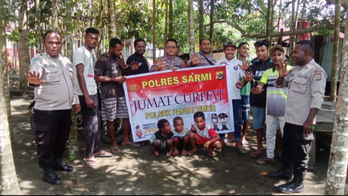 SARMI, PAPUA | Guna menjalin kemitraan dengan para tokoh masyarakat, personil Polsek Pantai Timur, Polres Sarmi, Papua, menggelar Jumat Curhat di Kampung Asyaaf, Distrik Pantai Timur Barat, Kabupaten Sarmi, Papua, Jumat siang (19/05/23). Acara ini dilakukan dalam rangka mewujudkan pelayanan prima kepolisian kepada warganya.