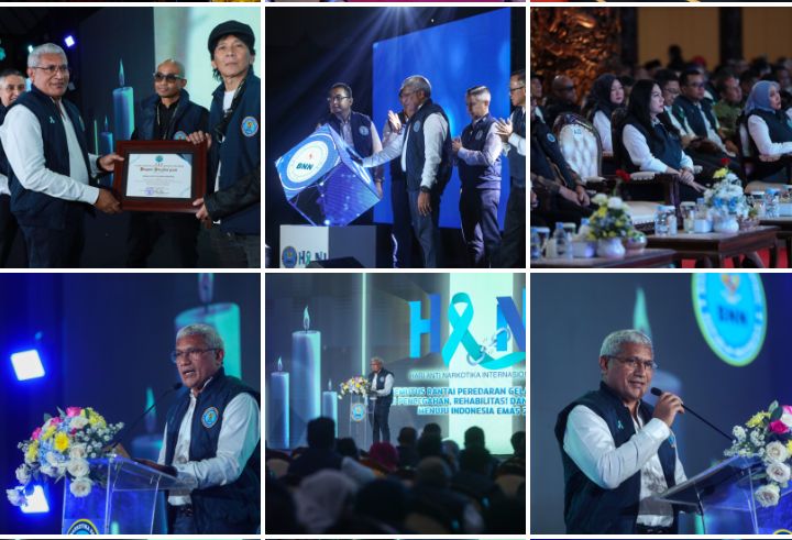 JAKARTA – Badan Narkotika Nasional (BNN) menggelar peringatan Hari Anti Narkotika Internasional (HANI) 2025 sebagai momentum untuk memperkuat komitmen nasional dalam memerangi kejahatan narkoba, sekaligus menggugah empati masyarakat terhadap para korban penyalahgunaan narkoba. Mengusung tema “Memutus Rantai Peredaran Gelap Narkoba Melalui Pencegahan, Rehabilitasi, dan Pemberantasan menuju Indonesia Emas 2045”, kegiatan ini menegaskan kembali pentingnya sinergi dan kolaborasi seluruh elemen bangsa dalam mewujudkan Indonesia yang sehat dan bersih dari narkoba (Bersinar).