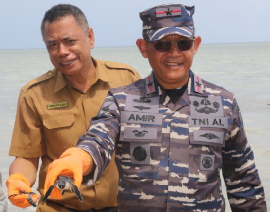 TNI AL, LANTAMAL VI | Peringatan Hari Nusantara Tahun 2022, Komandan Lantamal VI Makassar Brigadir Jenderal TNI (Mar) Amir Kasman S.E M.M menghadiri acara pelepasan tukik dan penanaman mangrove bertempat di wilayah pesisir pantai Melai One, Desa Matahora, Kecamatan Wangiwangi Selatan (Wangsel), Kabupaten Wakatobi, Sulawesi Tenggara (Sultra), Senin lalu, (12/12/2022).