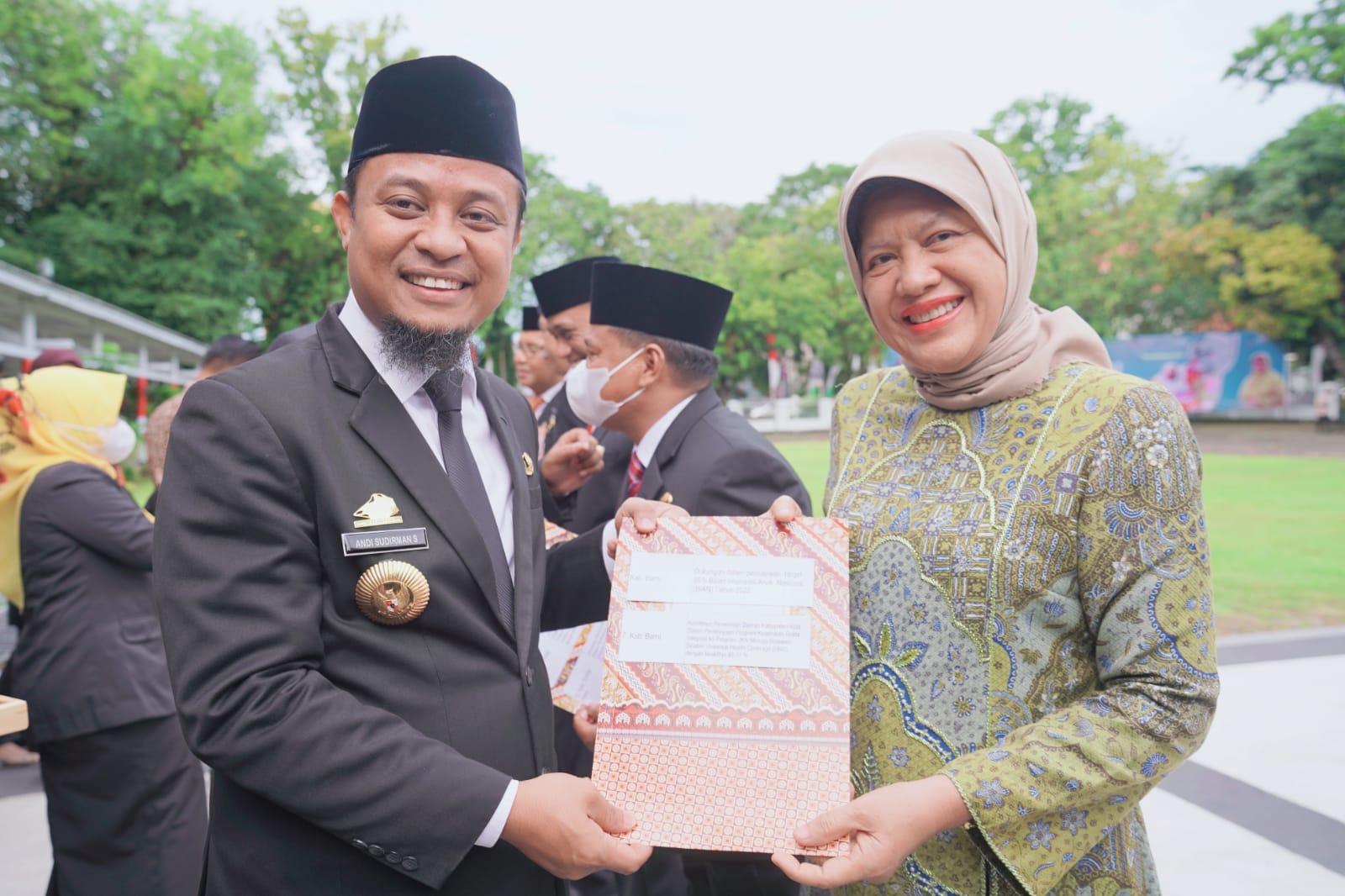SULSEL | Gubernur Sulawesi Selatan Andi Sudirman Sulaeman menyerahkan dua perhargaan kepada Pemerintah Kabupaten Barru berupa komitmen Pemda terhadap pembiyaaan kesehatan gratis ke program JKN menuju Health Universal Coverage (UHC) serta kabupaten dengan cakupan BIAN minimal 95 persen, serta satu penghargaan khusus yang diberikan kepada drg. Hj. Hasnah Syam, MARS selaku ketua forum KKS atas sumbangsihnya selama ini dalam menguatkan peranan forum KKS diKabupaten Barru dalam pembangunan kesehatan.