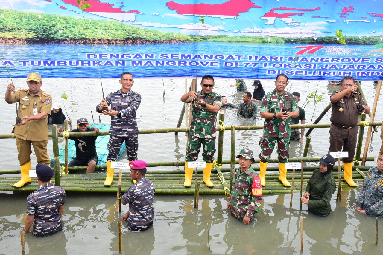 Penanaman mangrove nasional secara serentak dilaksanakan di 77 lokasi jajaran TNI AL dan tercatat sebaran terbanyak pada rekor MURI. “ Sedangkan acara penanaman mangrove dipusatkan di Tanjung Pasir Kec. Teluknaga Kab. Tangerang, Provinsi Banten yang dipimpin langsung Menteri Lingkungan Hidup dan Kehutanan DR. Ir. Siti Nurbaya. M.Sc.,