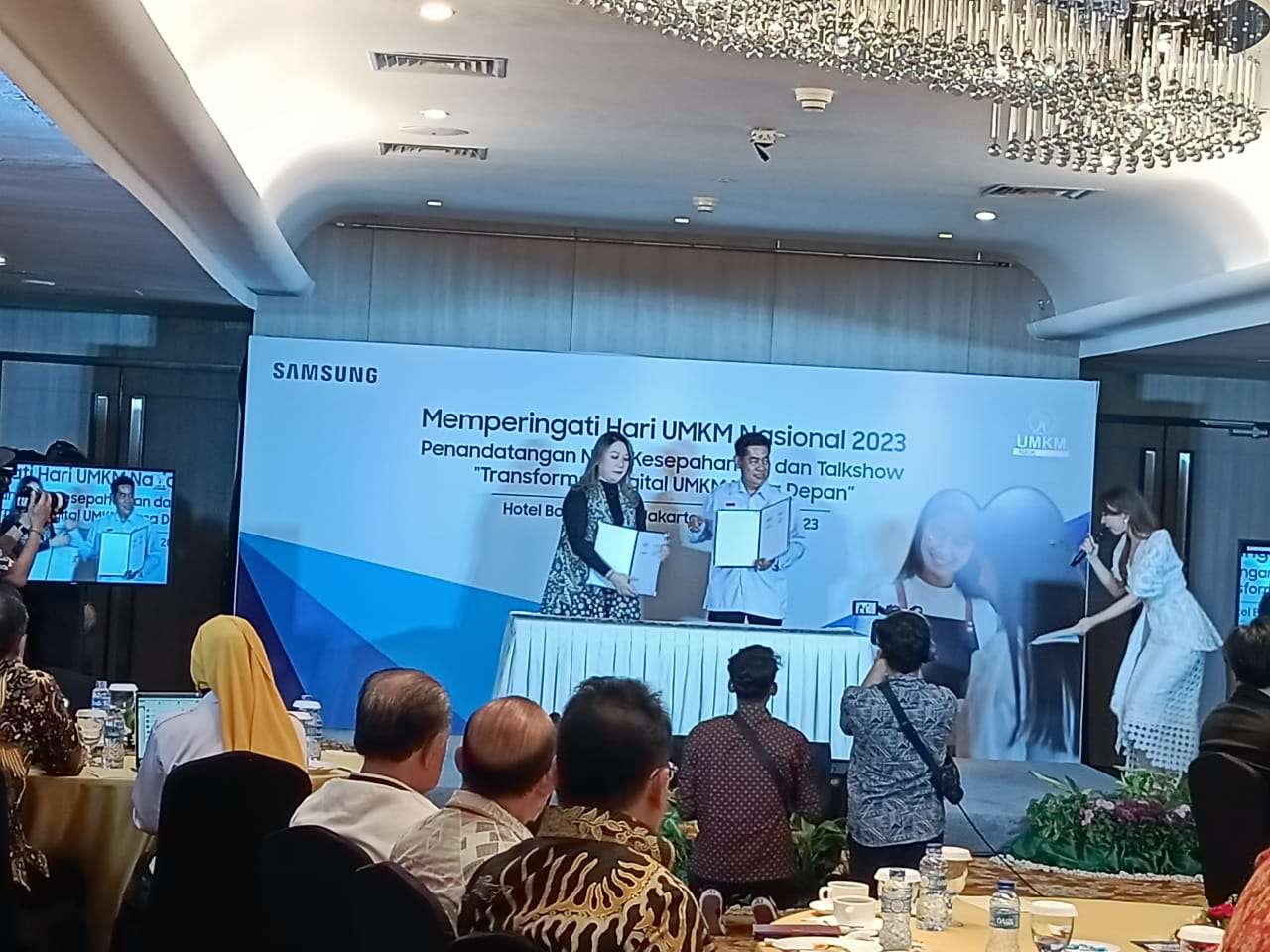 Hadir secara langsung Liana Susanto selaku head mobile Business to business (B2B) Samsung Elektronic Indonesia melakukan penandatanganan MoU antara Samsung Indonesia dengan UMKM Naik Kelas.